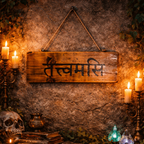 Esgotado50,00 € 50,00 €Placa decorativa em madeira com a inscrição sagrada Tat Tvam Asi, um dos mantras mais profundos da tradição espiritual oriental. Peça ideal para altares, espaços terapêuticos, salas de meditação ou ambientes de contemplação. Um símbolo de consciência, presença e identidade espiritual.